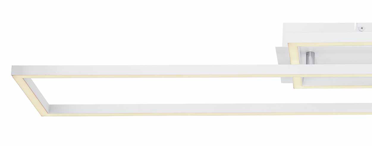 Verlevendig je leefruimte met deze verfijnde Tatjana serie plafondlamp, met een uniek ontwerp van dubbele rechthoekige frames in stralend wit metaal. Het opaal plastic bedekt de ingebouwde LED’s, die een krachtige verlichting van 2200 lumen garanderen. De bijzondere extra is de mogelijkheid om de lichtkleur naar wens aan te passen in drie stappen (2700, 4000 en 6000 Kelvin). Combineer het met andere designs uit dezelfde collectie voor een harmonieus en chic interieur.