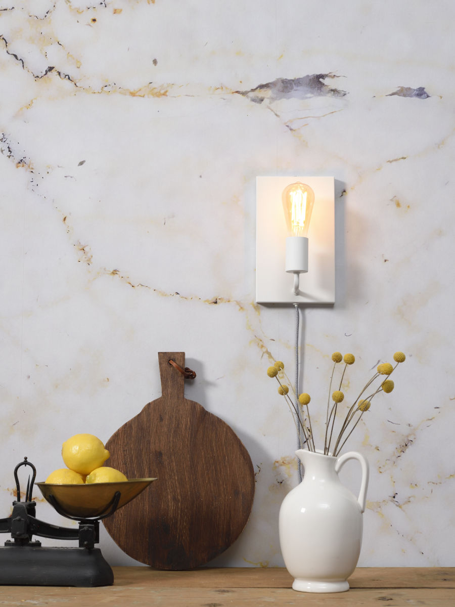 Witte minimalistische wandlamp rechthoekig van It’s About RoMi Madrid. Voeg een elegante retro touch toe aan je eetkamer, slaapkamer of woonkamer. Werkt met E27 fitting en is stofdicht (IP20). Exclusief lichtbron. Voor een stijlvolle en tijdloze uitstraling.