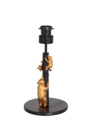 De zwart met gouden berenlamp uit de Animaux-serie van Anne Lighting is een speels en stijlvol verlichtingsstuk dat direct de aandacht trekt. Het armatuur bestaat uit een glanzend goudkleurig beeld van een berenfamilie, waarin een E27 fitting subtiel is verwerkt tussen de pootjes. De zwarte linnen kap met een goudkleurige binnenkant zorgt voor een warm en sfeervol lichteffect.