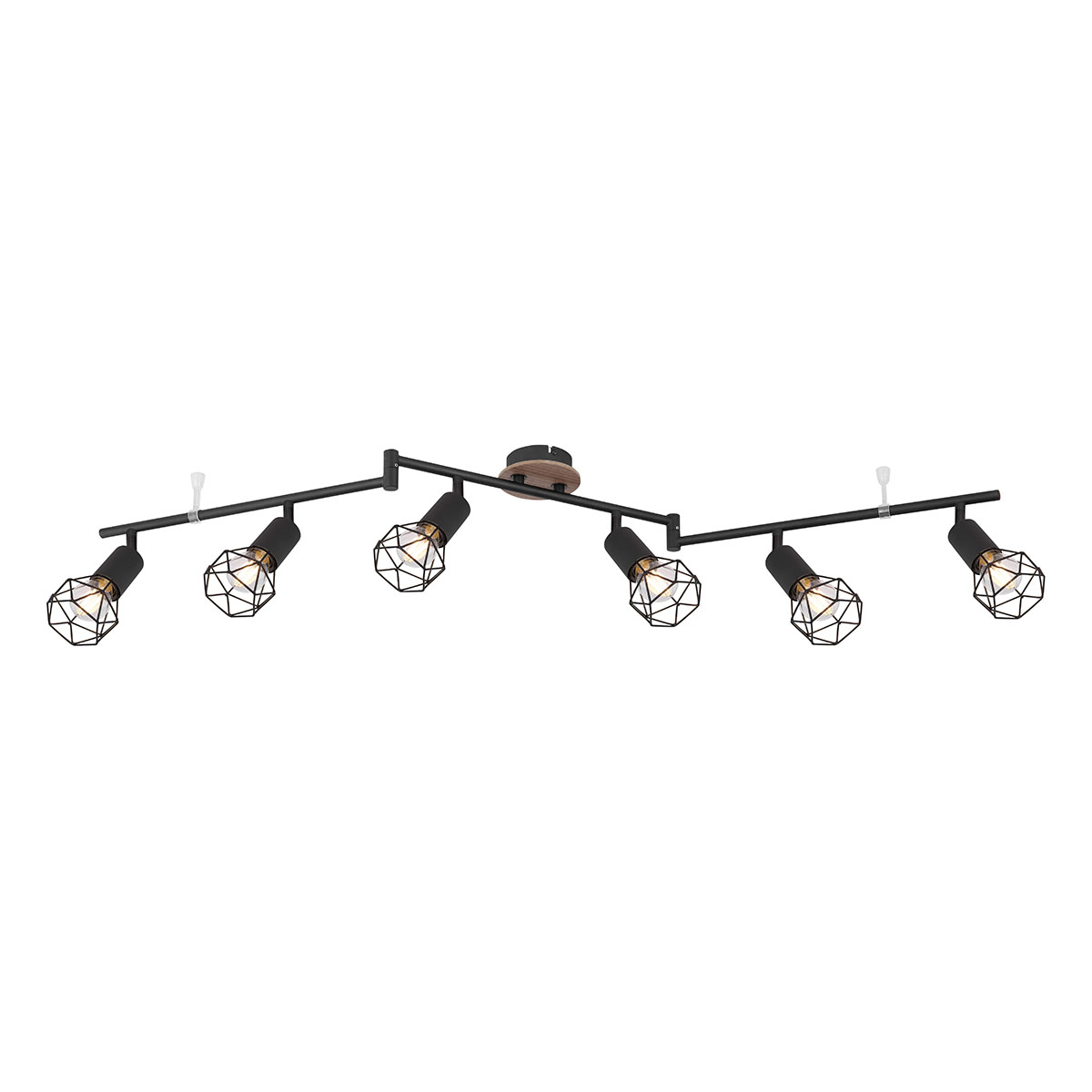 Ervaar de verfijning met deze elegante plafondspot uit de Xara I collectie, perfect om je leefruimte te verlichten. De spot, met zijn drie zwarte metalen staven van elk 116 cm, zorgt voor een stoere look, terwijl het ronde houten paneel een vleugje natuur toevoegt. Bovendien bieden de zes draaibare metalen gaaskappen, uitgerust voor E14-lampen, je de vrijheid om de helderheid en kleur van het licht naar eigen wens in te stellen. Combineer met andere items uit dezelfde collectie om zo een stijlvol en harmonieus decor in je interieur te creëren.