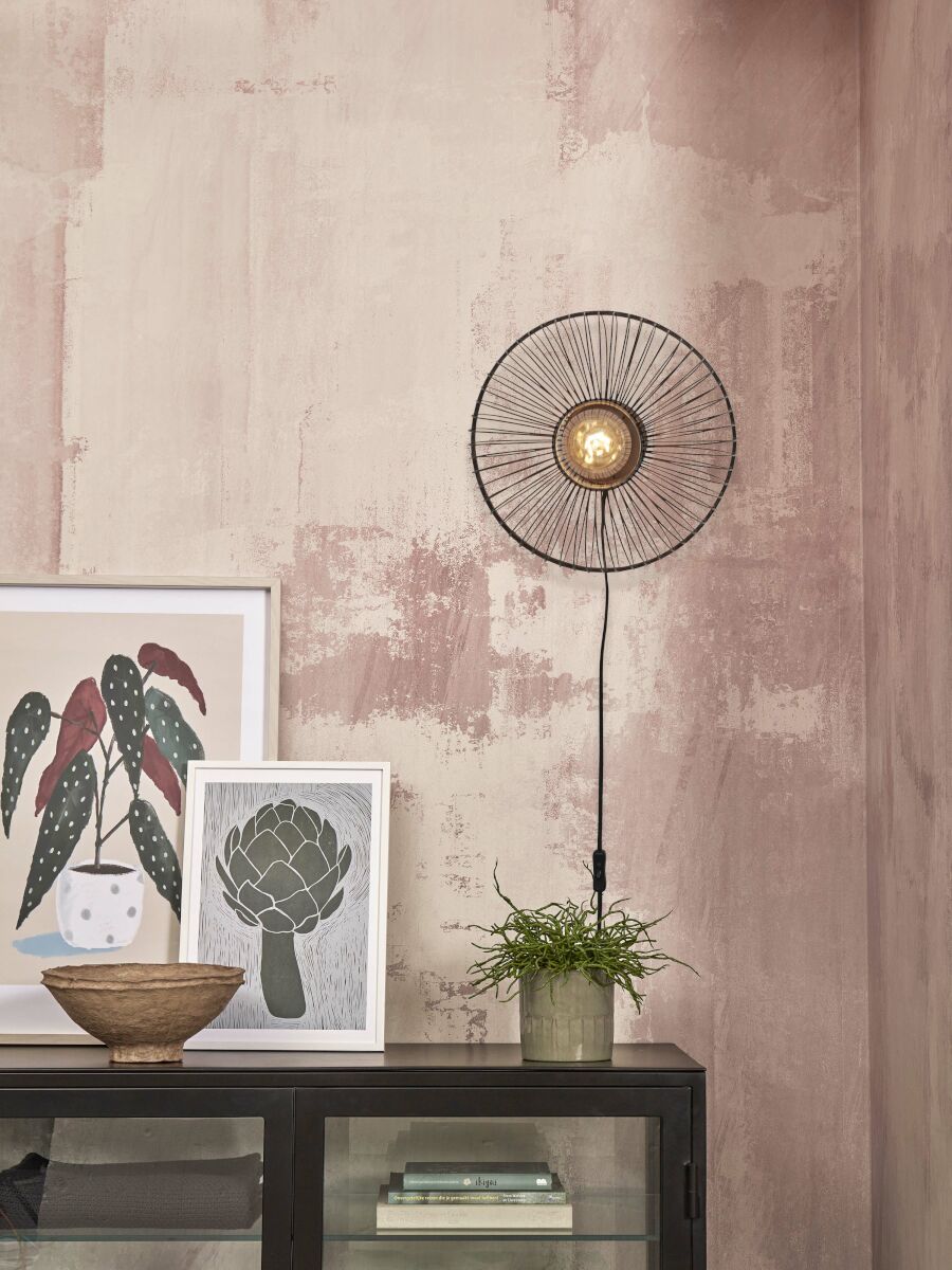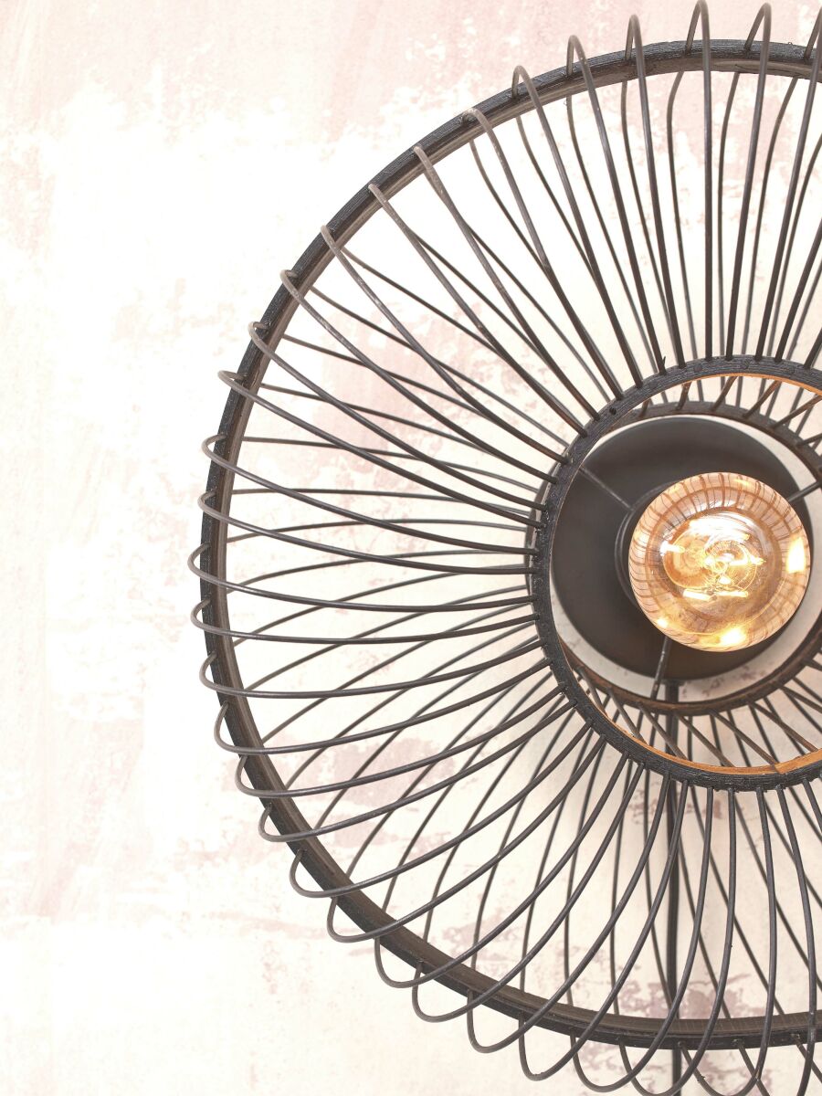 Zwarte bamboe wandlamp in oosterse stijl, geschikt voor eetkamer, hal, slaapkamer of woonkamer. Voorzien van een grote E27 fitting en stofdicht (IP20). Deze lamp voegt een exotische en sfeervolle touch toe aan je interieur, perfect voor een unieke en stijlvolle ambiance.