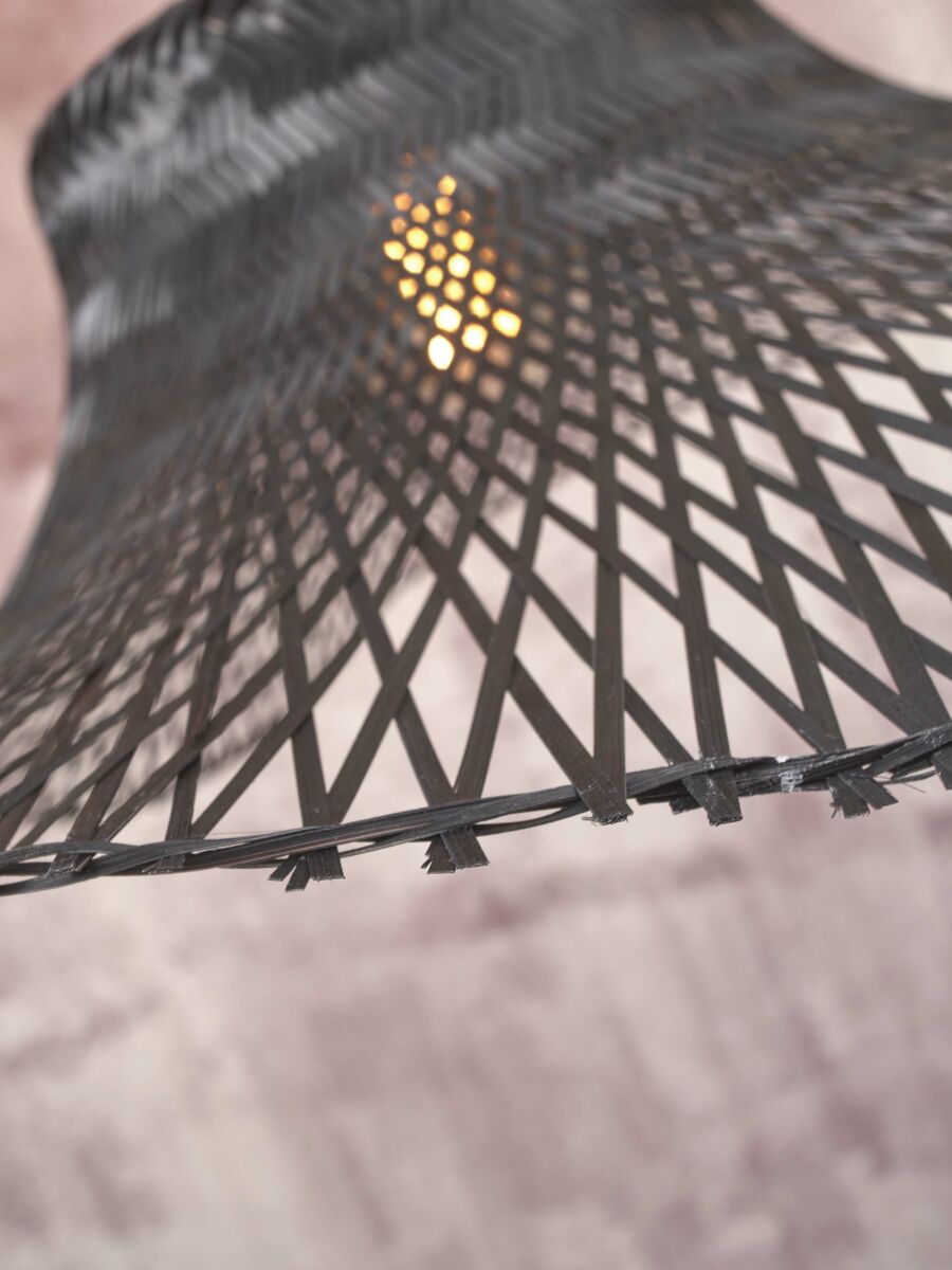 Zwarte boheemse bamboe vloerlamp GOOD&MOJO Ibiza. Deze zwarte bamboe lamp voegt een stijlvolle bohemian touch toe aan elk interieur. Perfect voor een luxe uitstraling in je eetkamer, slaapkamer of woonkamer. Exclusief lichtbron, geschikt voor E27 fitting.