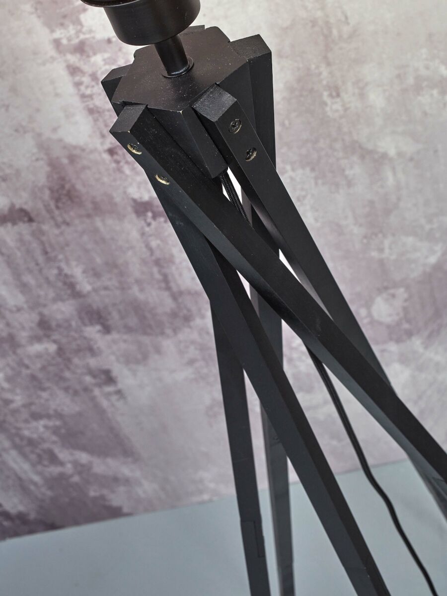 Zwarte bohemian vloerlamp van bamboe, ideaal voor eetkamer, slaapkamer of woonkamer. Voorzien van een grote E27 fitting en stofdicht (IP20). Voeg een stijlvolle en exotische touch toe aan je interieur. Het zwarte bamboe zorgt voor een moderne en mystieke uitstraling, perfect om een chique en sfeervolle ambiance te creëren. Een unieke aanvulling voor elke ruimte.