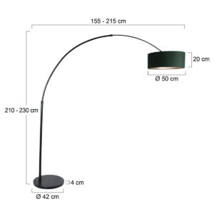 Zwarte booglamp met velvet groene kap Steinhauer Sparkled light
