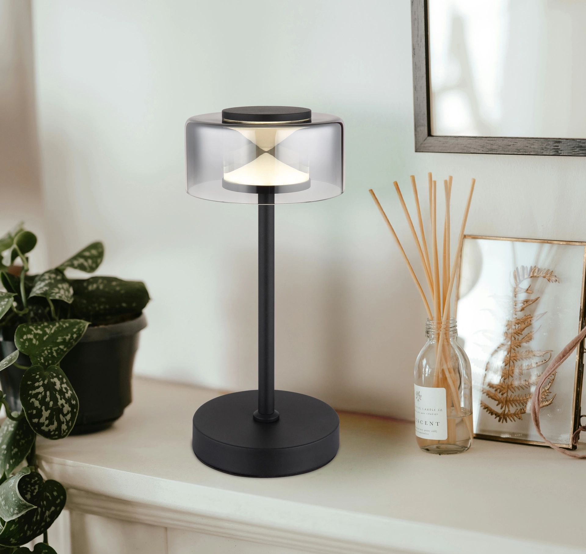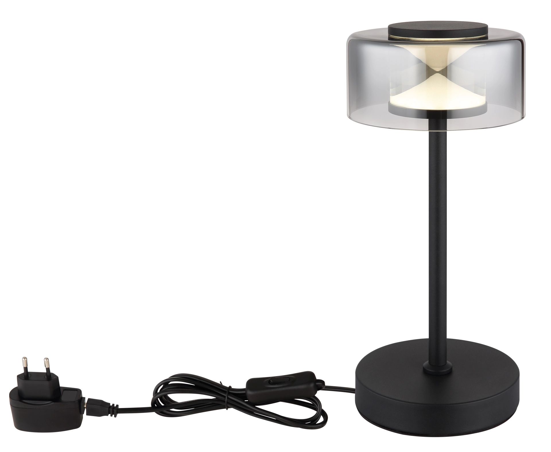 De BELINDA tafellamp in zwart gematteerd metaal is een prachtige toevoeging aan elke ruimte. Deze lamp is uitgerust met een ronde kap van rookkleurig, helder glas, wat zorgt voor een aangename verspreiding van het licht. Met een diameter van 150 mm en een lumenoutput van 180 is deze lamp perfect voor kleine tafels of als sfeervolle decoratieve verlichting.