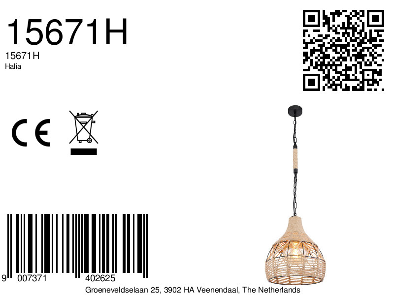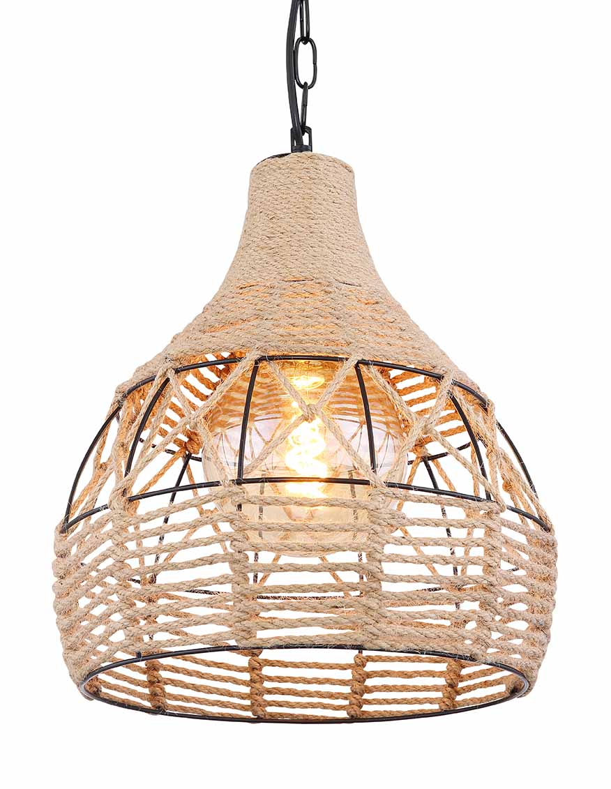 Deze hanglamp met de naam Halia steekt met een totale lengte van 135 cm de kamer in. De lampenkap (Ø 30 cm) bestaat uit zwarte balken, die prachtig is omwoed met een henneptouw. Door de vrije keuze van de lichtbron (E27/max. 60W) kunt u de lichtintensiteit en lichtkleur in uw eigen woning bepalen. LED-lampen zijn bijzonder geschikt voor gebruik in open armaturen zonder verblinding te veroorzaken. Vanwege hun lange levensduur raden wij u aan om LED-lampen te gebruiken. Om het totaalplaatje in uw huis compleet te maken, raden wij u aan andere modellen uit deze serie te gebruiken.