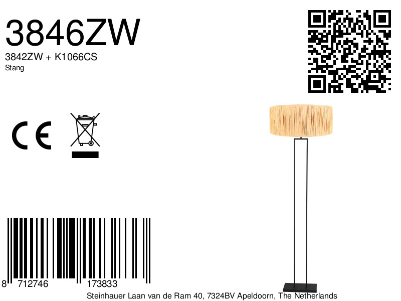 De zwarte industriële vloerlamp Stang van Steinhauer met houten kap combineert robuust design met een bohemian uitstraling. De lamp heeft een hoogte van 160 cm en is voorzien van een E27 fitting. Dankzij de kantelbare fitting blijft de kap altijd recht hangen. De naturelkleurige gras kap met een diameter van 50 cm zorgt voor een sfeervolle en natuurlijke lichtverdeling. Een geïntegreerde aan/uit schakelaar in het snoer biedt extra gebruiksgemak. Ideaal voor de eetkamer, woonkamer of het thuiskantoor en geleverd met 2 jaar fabrieksgarantie.