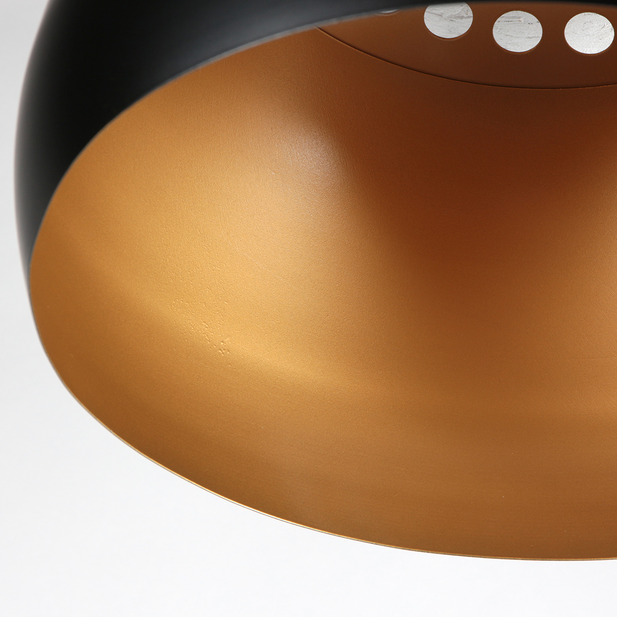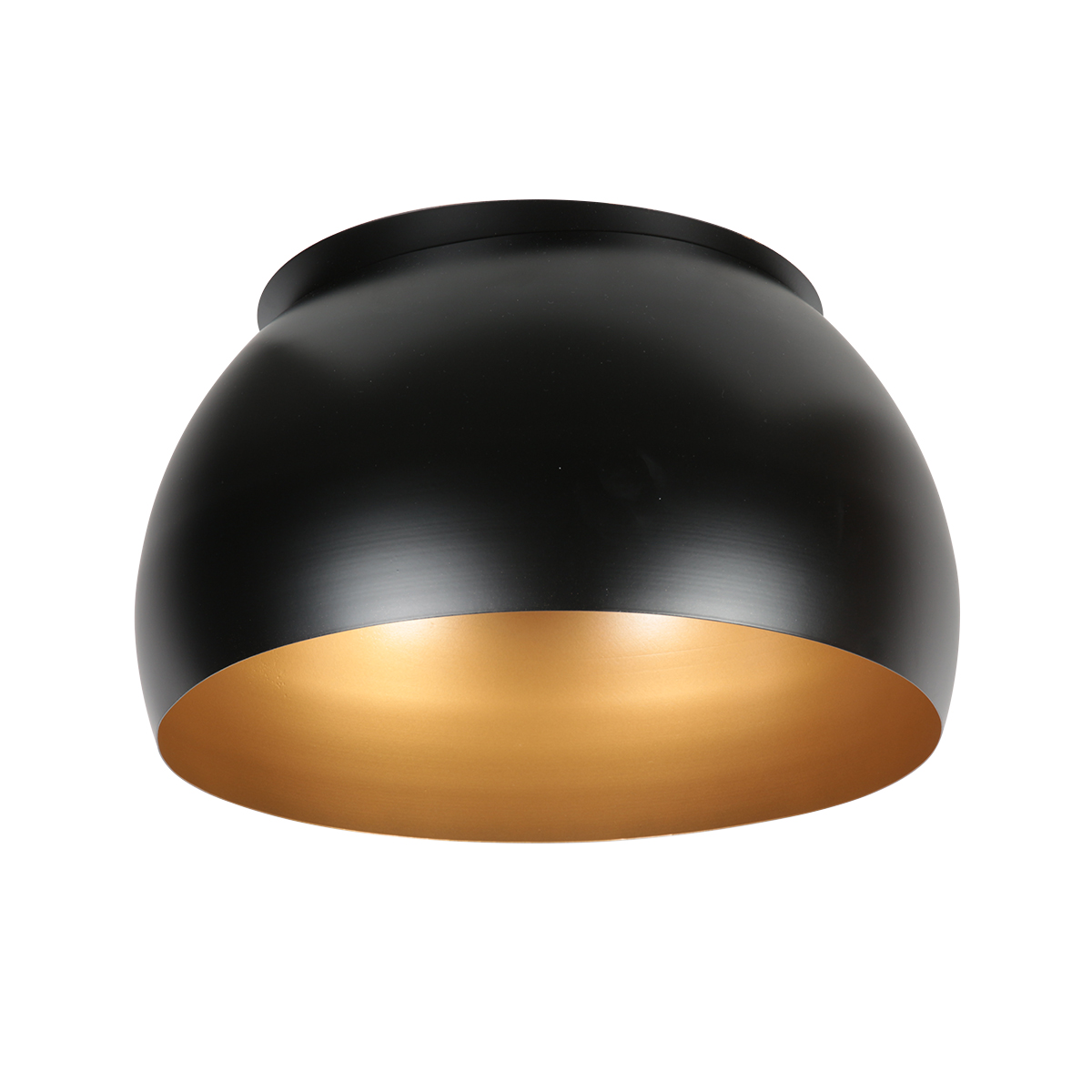 p>Deze zwarte lampenkap van 42 cm heeft een metalen look met een matzwarte buitenzijde en een warme goudkleurige binnenkant. Door het contrast tussen zwart en goud ontstaat een luxe, hotel chique uitstraling die mooi past in een modern of industrieel interieur.