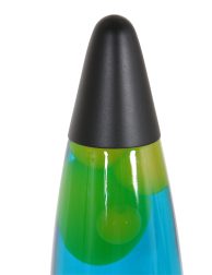 De Volcan lavalamp in zwart brengt een retro sfeerelement in huis. De raketvormige lamp bevat groenblauwe vloeistof waarin de bubbels elegant op en neer bewegen. Met een E14 fitting en een 25 Watt G30 lichtbron zorgt deze lamp voor een betoverend lichteffect. Dankzij de aan/uit-schakelaar in het snoer is hij eenvoudig te bedienen.