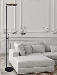 De zwarte vloerlamp uit de Turound-serie is een stijlvolle toevoeging aan moderne interieurs. De uplighter straalt 4000 lumen uit, terwijl de flexibele leesarm 1000 lumen licht biedt. De lichtkleur is instelbaar tussen 2200 en 4000 Kelvin. De knoppen op de opgaande buis maken het eenvoudig om de lichtsterkte aan te passen. De glazen schotels verspreiden het licht gelijkmatig, wat zorgt voor een zachte en aangename verlichting. De vloerlamp is ideaal als leeslamp en sfeerverlichting.