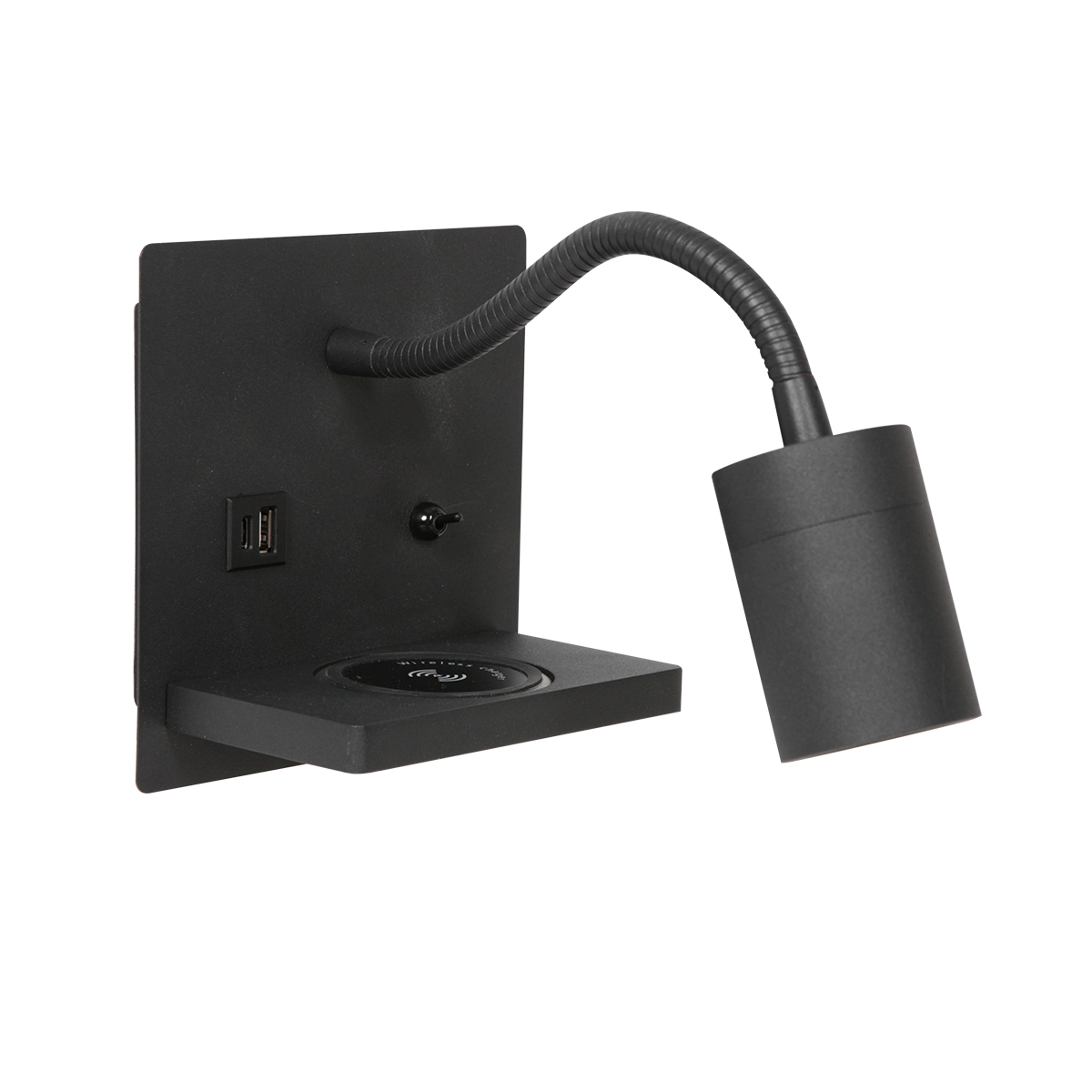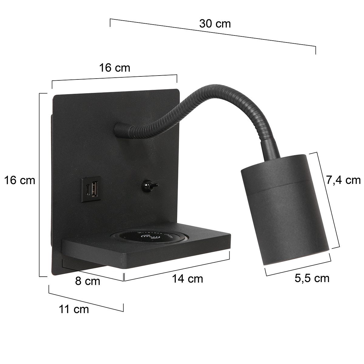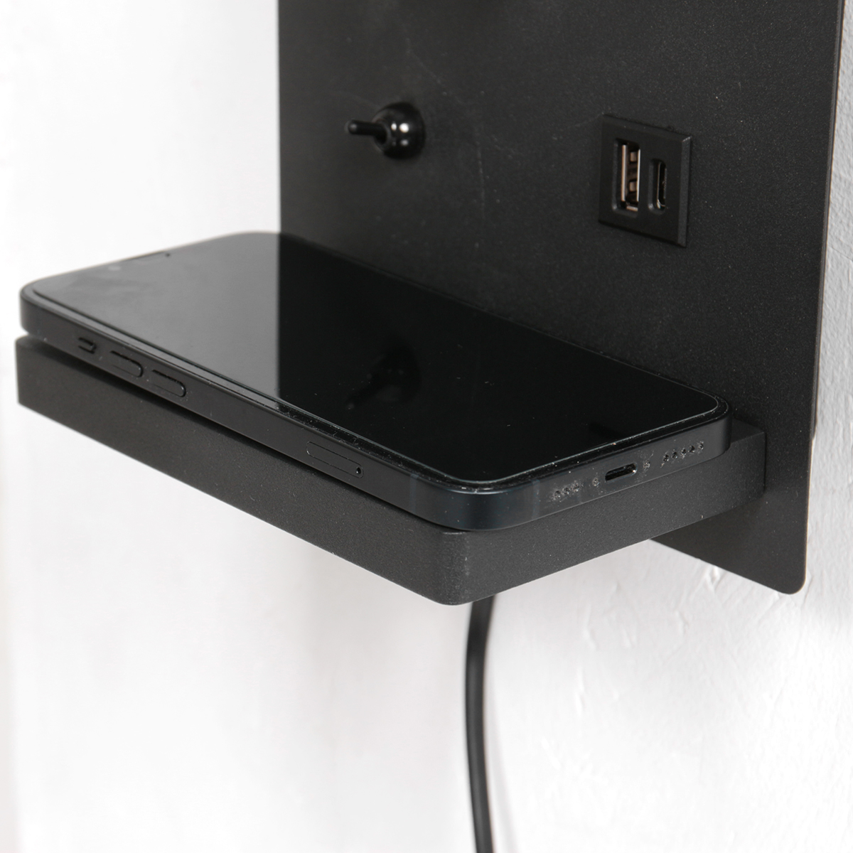 Deze wandlamp heeft een ingebouwde draadloze telefoonlader en USB-A en USB-C aansluitingen, wat zorgt voor extra gemak. De dim-to-warm lichtbron van 2200K tot 2700K biedt een warme en sfeervolle uitstraling. De aan/uit-schakelaar op de wandplaat maakt de bediening eenvoudig en gebruiksvriendelijk.