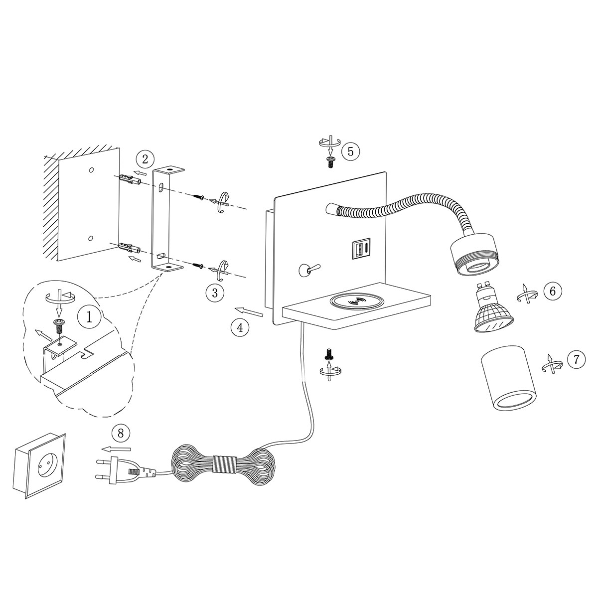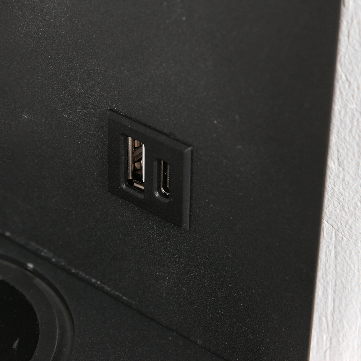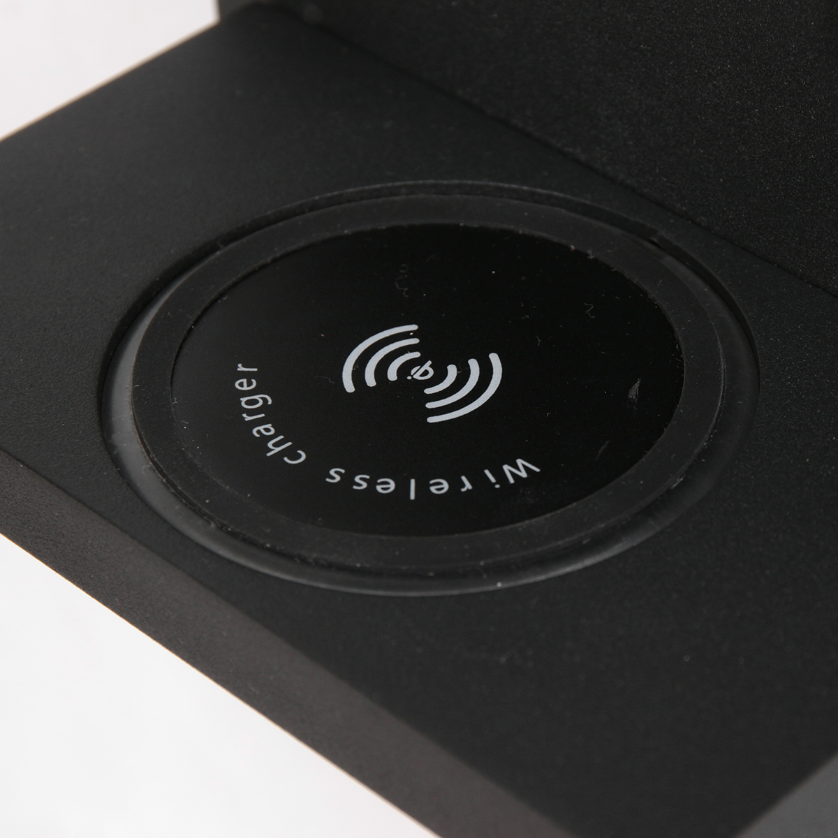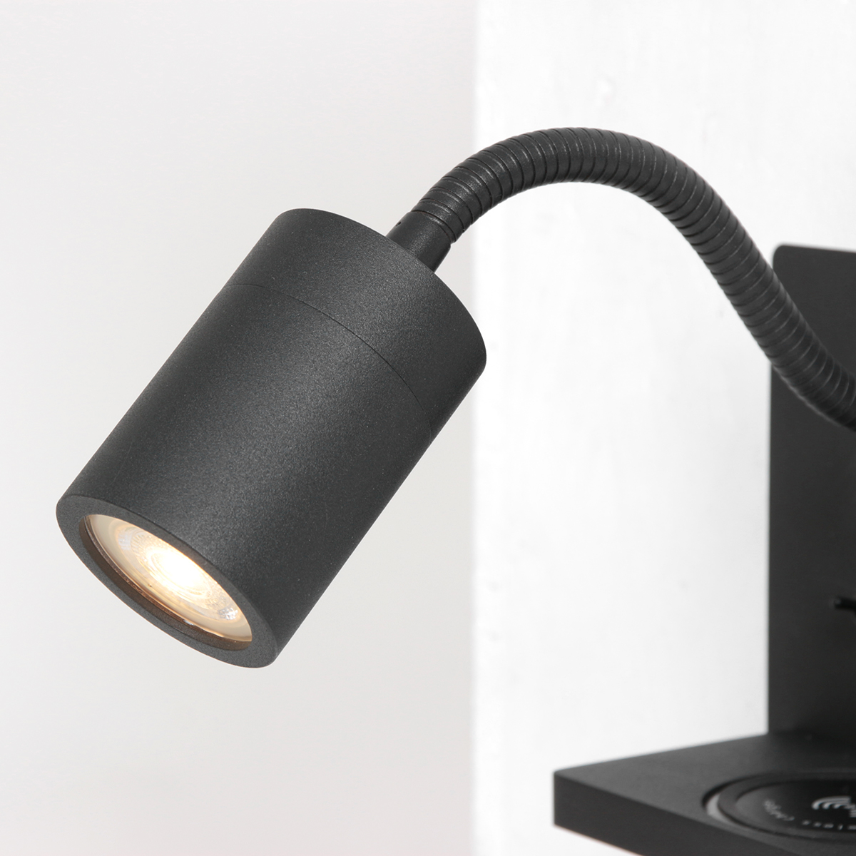 Deze wandlamp heeft een ingebouwde draadloze telefoonlader en USB-A en USB-C aansluitingen, wat zorgt voor extra gemak. De dim-to-warm lichtbron van 2200K tot 2700K biedt een warme en sfeervolle uitstraling. De aan/uit-schakelaar op de wandplaat maakt de bediening eenvoudig en gebruiksvriendelijk.