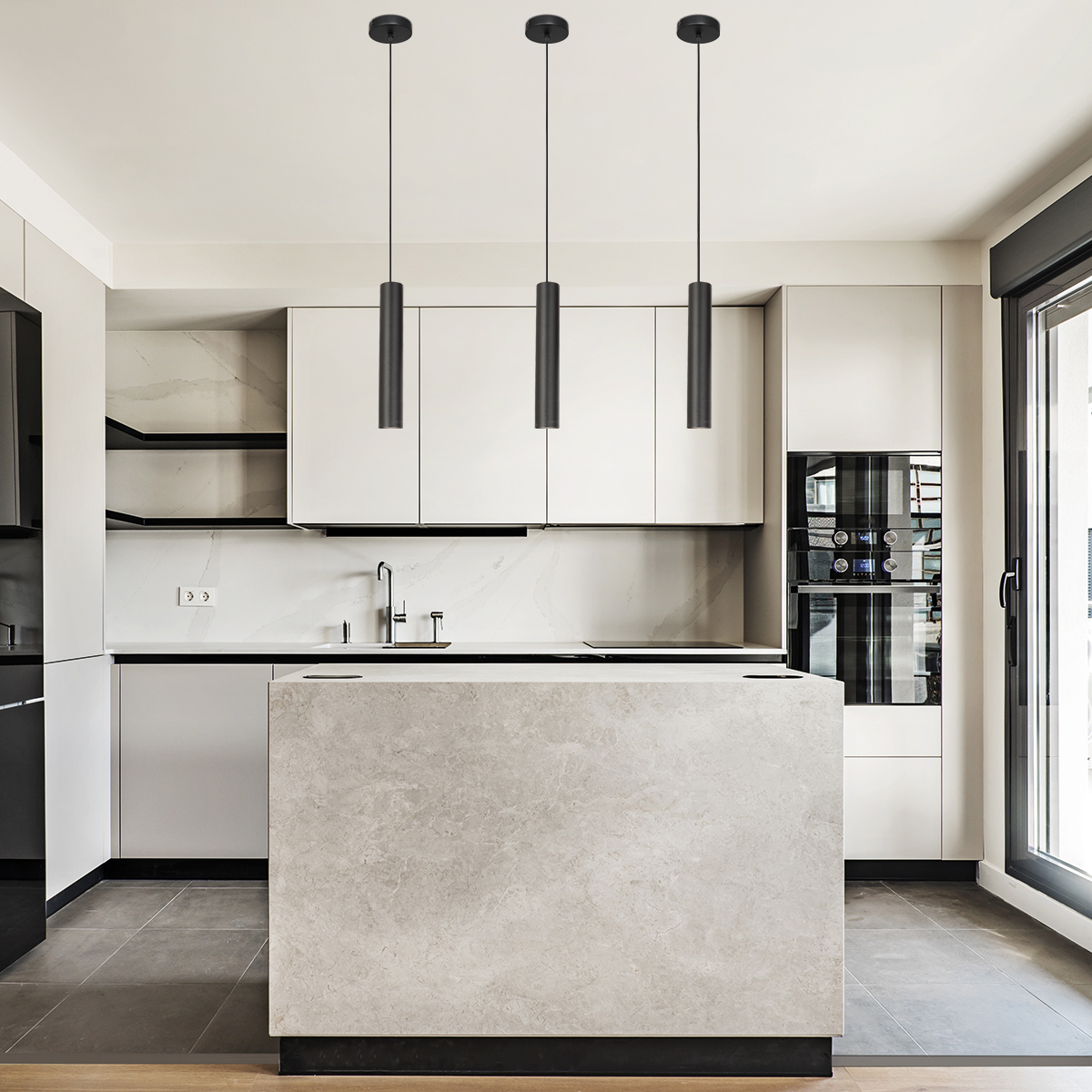 Moderne hanglamp langwerpige cilinder zwart  Steinhauer Tubel