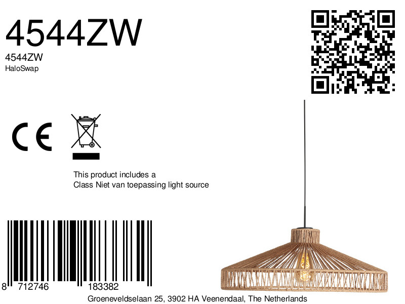 De grote touwkap van ongeveer 50 centimeter breed en 19 centimeter hoog heeft een open, gevlochten structuur die zorgt voor een speels lichtspel op muur en plafond. De natuurlijke touwkleur geeft de ruimte een bohemian en ontspannen sfeer, vooral in combinatie met een decoratieve filamentlamp. Deze combinatie is zeer geschikt boven de eettafel of als statementlamp in de woonkamer.