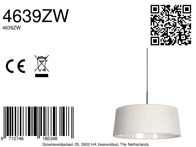 Met de zwarte linnen kap ontstaat een stijlvol en eigentijds statement. De combinatie van zwarte stof en witte binnenzijde geeft een mooi contrast en zorgt voor een helder maar warm licht. Ideaal voor wie houdt van een moderne, rustige en luxe uitstraling.