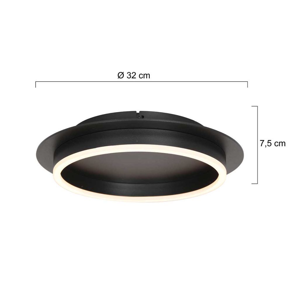 De zwarte plafondlamp Ringlux heeft een diameter van 32 cm en een hoogte van 7,5 cm. Met een lichtkleur van 2700K en een lichtopbrengst van 2000 lumen creëert deze plafonnière een aangename en sfeervolle verlichting. De hoge CRI-waarde van 90 zorgt voor een realistische kleurweergave. Dimbaar met een externe dimmer, zodat je eenvoudig de juiste sfeer creëert. Het ronde zwarte armatuur met subtiele LED-verlichting maakt deze plafondlamp een tijdloos en veelzijdig element in je interieur.