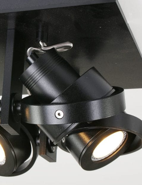 Verstelbare 4-lichts zwarte spot uit de Quatro-serie, ideaal voor moderne en industriële interieurs. Deze opbouwspot is zowel draaibaar als kantelbaar, waardoor je de verlichting perfect kunt richten. Geschikt voor montage aan wand of plafond en voorzien van vier energiezuinige 7 watt LED-lampen. Met zijn strakke zwarte design past hij moeiteloos in de woonkamer, keuken, hal of kantoor. Bovendien is deze spot geschikt voor de badkamer in zone 3.