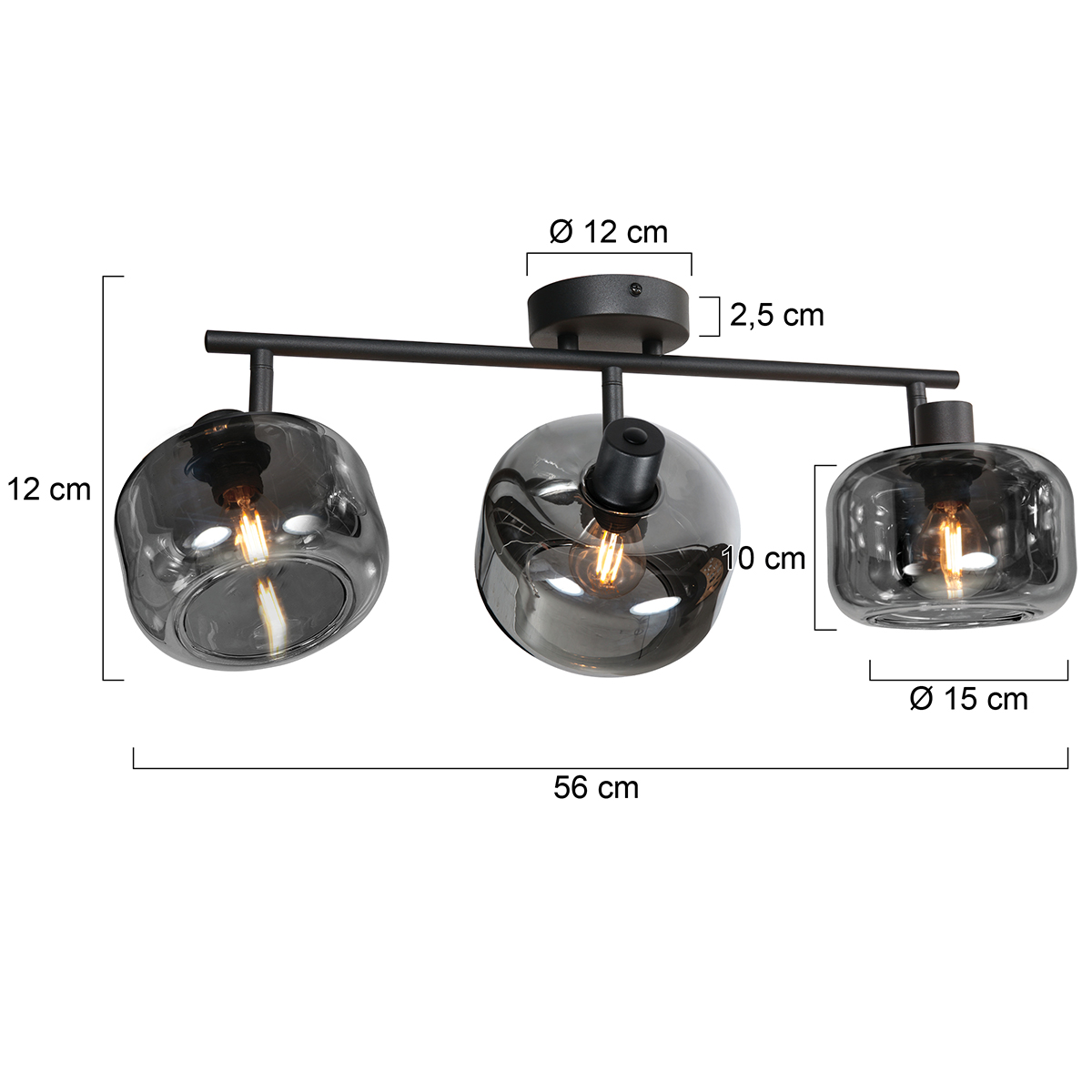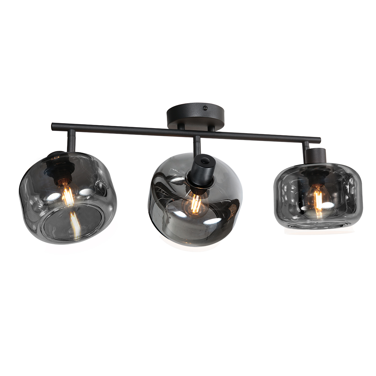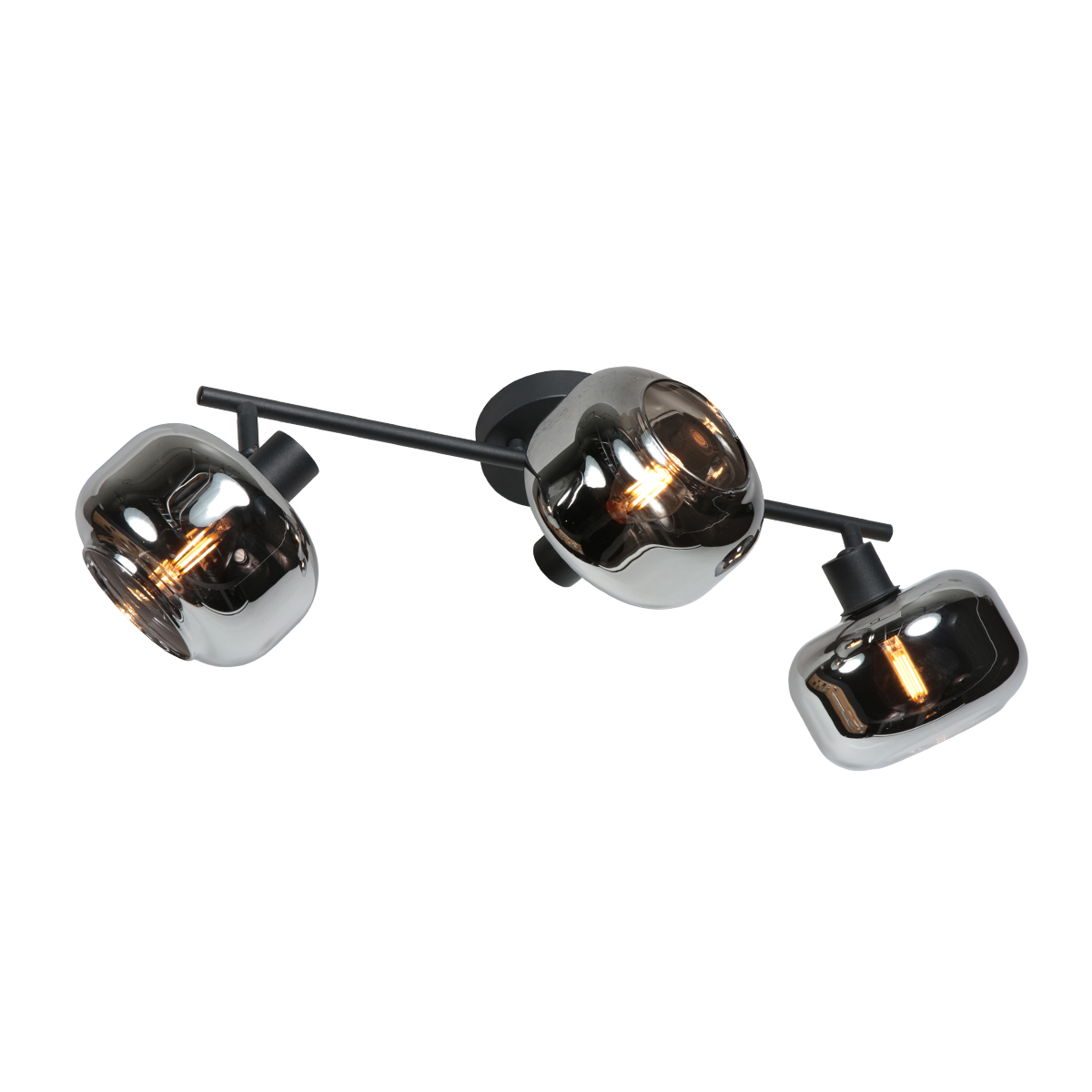 Zwarte rookglas 3-lichts plafondspot Mexlite Tenebris