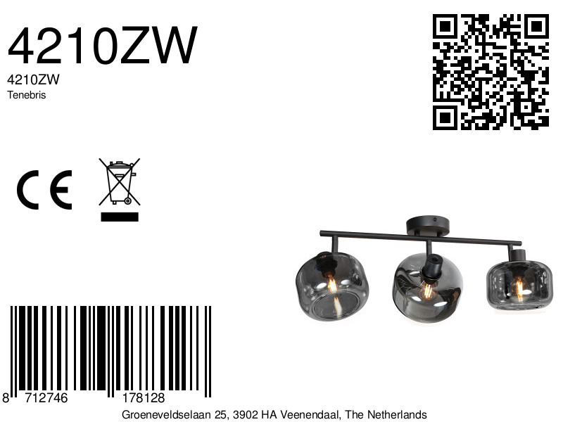 De Tenebris 3-lichts plafondspot is een stijlvolle eyecatcher die elegantie en functionaliteit combineert. De drie rookglazen kappen verspreiden een warm en sfeervol licht, terwijl de zwarte behuizing een strak en modern karakter toevoegt. Geschikt voor E14 lichtbronnen en dimbaar, zodat je eenvoudig de juiste ambiance creëert.