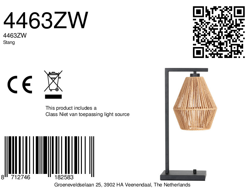 Het strakke, matzwarte design van de Stang tafellamp vormt een mooi contrast met de hogere touwlampenkap van 20 bij 24 centimeter. Het metalen armatuur is uitgerust met een E27 fitting voor lichtbronnen tot 40 watt en wordt geleverd met een snoer van 140 centimeter. De bediening via de draaiknop op de voet maakt de lamp praktisch in dagelijks gebruik.